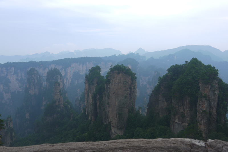 我們的第二站:袁家界。在這里,我感受到了一個(gè)現(xiàn)代高科技帶來的震撼。站在高度300多米的百龍?zhí)焯莸耐该飨潴w里,隨著天梯的緩緩上升,我們就像鳥兒一樣穿出山體,劈開云霧,沖天而起,一種從未有過的刺激感引得我們聲聲尖叫。到達(dá)山頂,一排排石巖赫然展現(xiàn)在我們眼前,高低錯(cuò)落,森然有序,儼然列隊(duì)的將士,聽導(dǎo)游說,這便是48將軍巖,真是“壯如其名”。