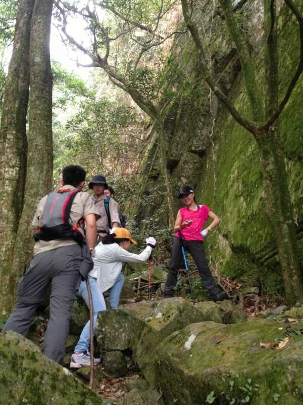 周末,好友相約,登頂大明山早。上十點(diǎn)從南寧出發(fā),經(jīng)過一個(gè)小時(shí)車程到達(dá)大明山腳。當(dāng)我們站在山腳仰望山頂時(shí),心中對(duì)挑戰(zhàn)極限充滿了渴望。不管多么遠(yuǎn)、多么高、多么陡、多么險(xiǎn),開始攀登,才發(fā)覺,每前進(jìn)一步,眼前的風(fēng)景決然不同,直有直的筆挺,曲有曲的險(xiǎn)峻,險(xiǎn)有險(xiǎn)的俊秀,高有高的視野!就這樣,我們懷著好奇,帶著已知和未知的肯定與否定,開始一路攀爬。上山的路愈發(fā)陡峭、危險(xiǎn),漸漸地,大伙的體力開始不支,大腿灌了鉛似的變得越來越沉。同行的小伙伴感嘆這是登山還是攀巖,大家手腳并用,每前進(jìn)一步,都感覺無比艱辛。其中一個(gè)小伙伴開始動(dòng)搖,想放棄,但是團(tuán)隊(duì)登頂?shù)男拍睿屛覀儾辉试S放棄,大家相互鼓勵(lì),相互攙扶,堅(jiān)持登頂。